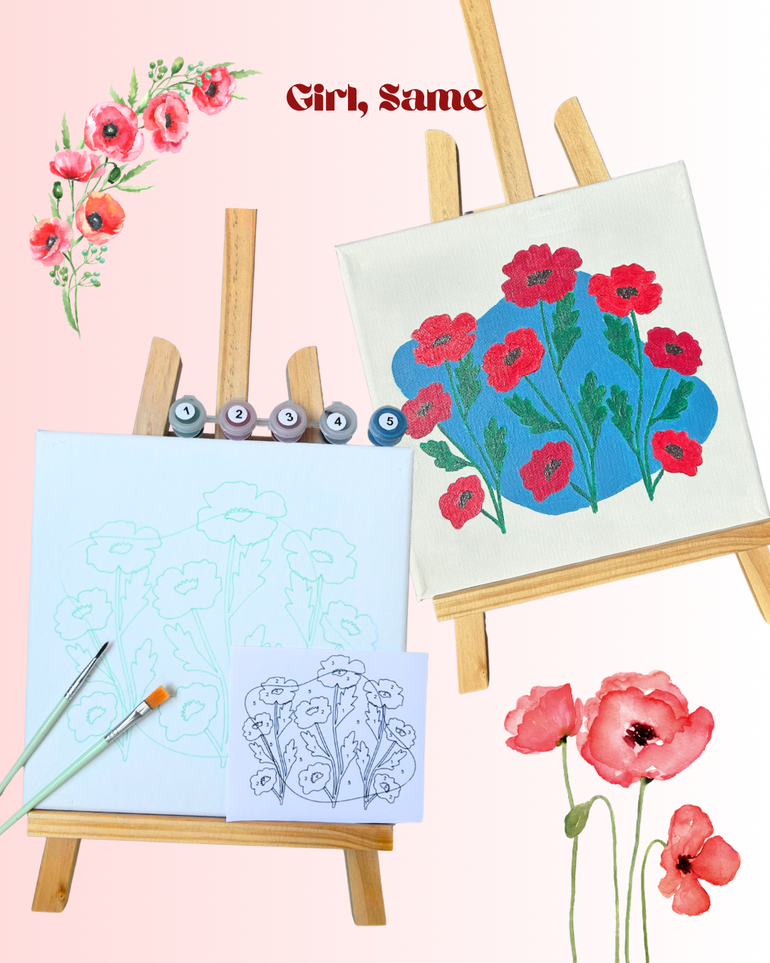 🌺 POPPY FIELD – Paint by Numbers Canvas Kit by Girl, Same